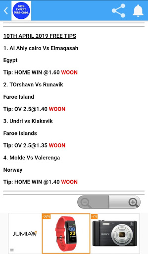 100% EXPERT SURE-ODDS Application has a professional team which ensures that our users receive accurate slips everyday. The team analysis teams with high probability of winning . The analysis is based on Head to head statistics, Recent form of the teams, Technical lineups, Club news , Coach Views etc.