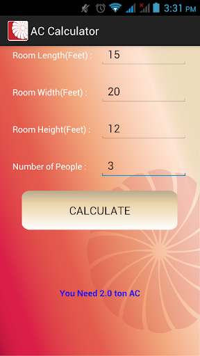 AC load calculator….. Using this calculator, user could calculate AC load for a particular room regarding room area, height and numbers of person stay in the room.