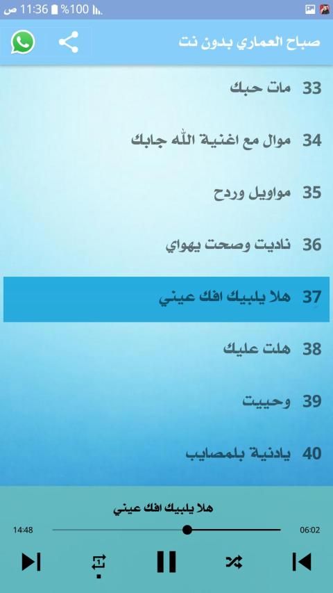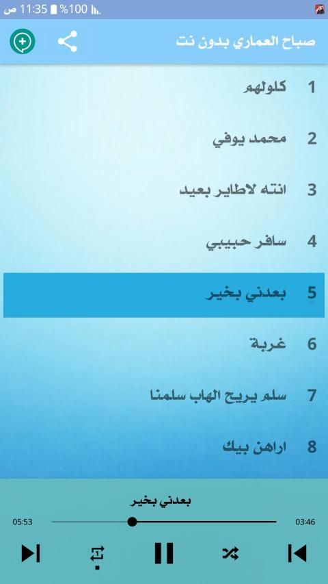تطبيق اغاني الفنان الصباح العماري بجودة عالية وبدون الحاجة الى اتصال في الانترنت