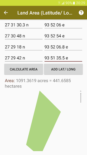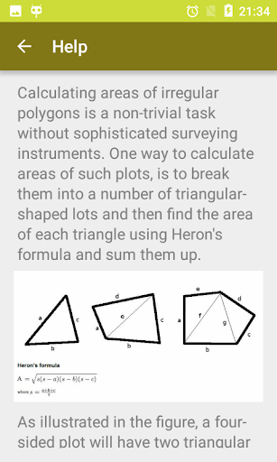 This app is useful for land area calculation for plots of all shape and size be it triangle, rectangle, circle or any simple polygon. You can also quickly convert between area units viz., hectares, acres, square meter, square feet, square yards, square km and square mile
