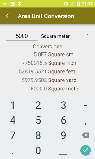 * Area converter support for local units used across India including bigha, biswa, biswansi, guntha, ground, kanal, kani, katha, kuncham, lecha, marla, nalli and more