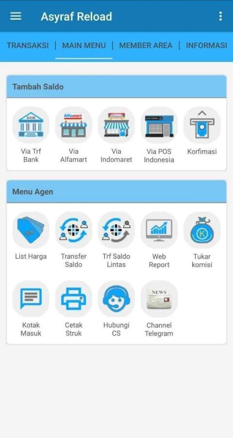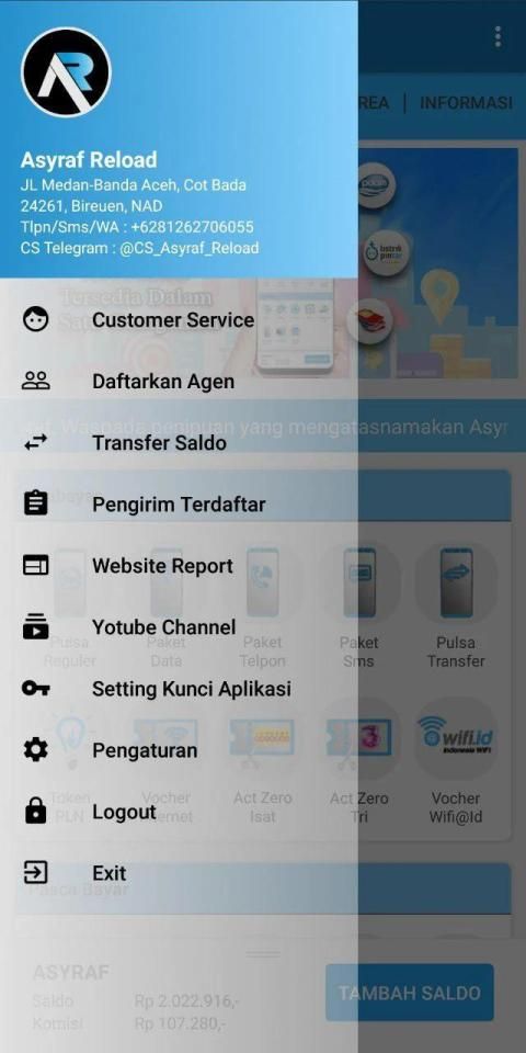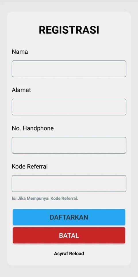 Aplikasi android Asyraf Reload adalah aplikasi mobile gratis untuk mitra atau member-member setia Asyraf Reload di mana pun berada. Aplikasi ini memudahkan Anda dalam melakukan berbagai transaksi seperti pengisian pulsa, pembelian token listrik, pembayaran tagihan pasca bayar, pembelian voucher game, dan lain-lain.