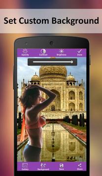 - Opacity, Brightness and contrast tool to adjust and suit your photo with the new background.