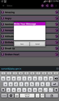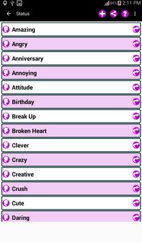 Enjoy the largest Status Messages SMS collections (Online/Offline) to share with your friends on any Social Networking Platform, SMS, email, Chats, etc.