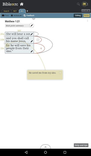 Biblearc is a cloud-based application for deep study of the scriptures. In our Bible study toolbox you will find an approachable and powerful integration of cross-references, study notes and the most advanced original language search available online. Biblearc’s speciality is graphical Bible study methods, giving you the world’s smoothest experience for Arcing, Bracketing, Phrasing and Sentence Diagramming. Access your work from anywhere, as it is saved in the cloud. We offer online courses for all levels, from the beginner who has never heard of these methods and simply wants to learn to study the Word deeper, to the professor and pastor already using them.