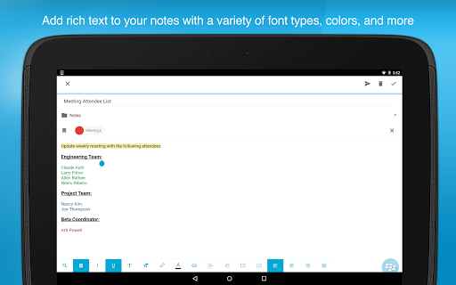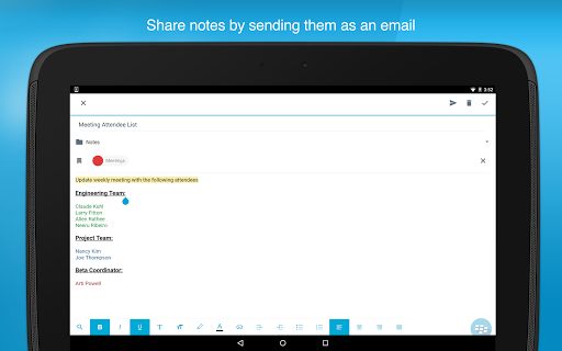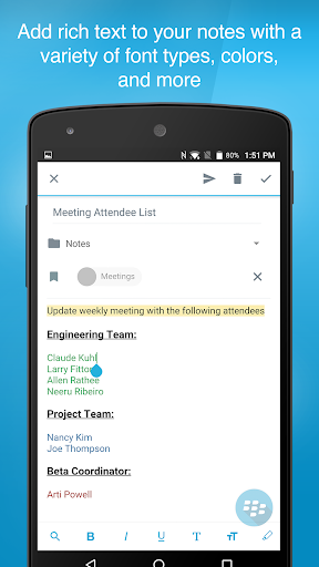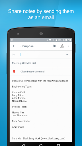 • Share your notes by sending them as emails (requires BlackBerry® Work).