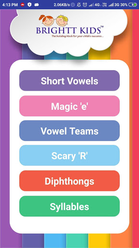 Brightt Kids Phonics is a simple yet effective tool to teach English Phonics to young kids in a well planned sequence.ABC sounds: This part deals with each unique letter sounds. Both Small and Capital letters are shown along with the sound. Colourful images beginning with each sound is shown after each letter. Learn to Read section deals with