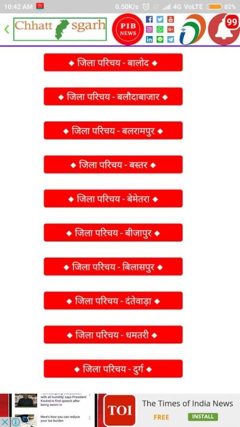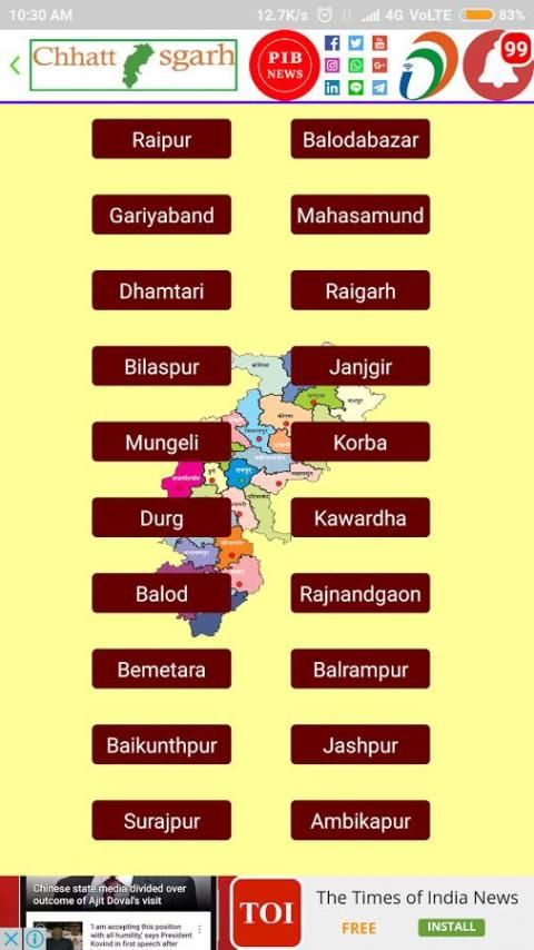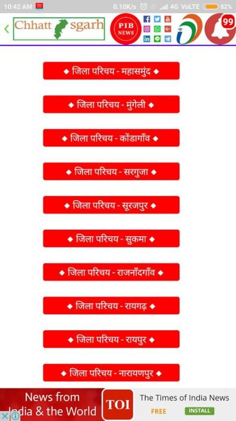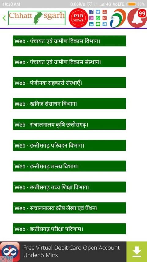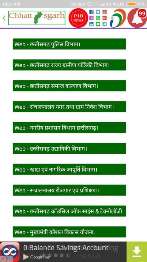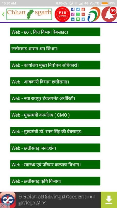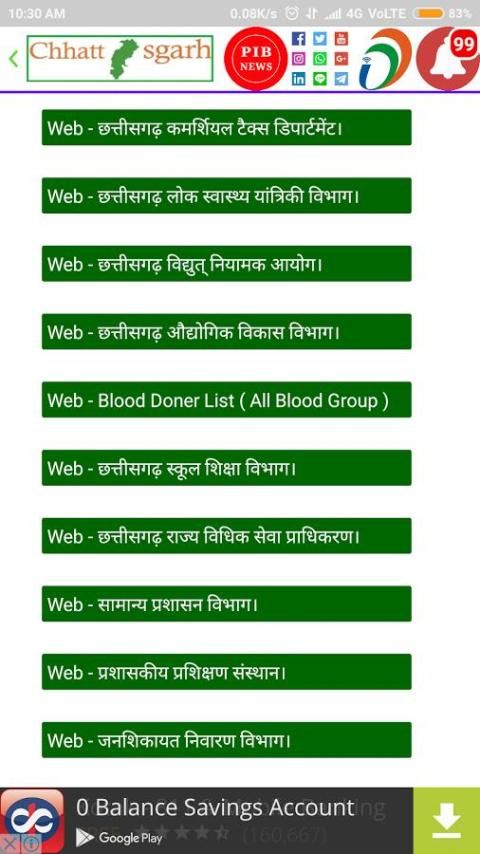 6. BOOKMARKS SECTIONS - Having all Distriks is this section (Korea, Surajpur, Balrampur, Surguja, Jashpur, Raygda, Korba, Janjgir-Champa, Bilaspur, Mungeli, Kawardha, Bemetara, Bludabajar, Mahasamund, Raipur, Durg, Rajnandgaon, Balod, Dhamtari , Gariaband, Kanker, Kondagaon, Narayanpur, Bastar, Dntewadaa, Bijapur, Sukma) Official website & Cttisgda Gvnrment Which is accessible from all department official website is this single application.