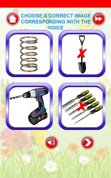 _Beside learning vocabulary, there are quizzes which help children review the lesson. 4 photos will be displayed on the screen, kids only need to find the correct picture which is correlative with audio