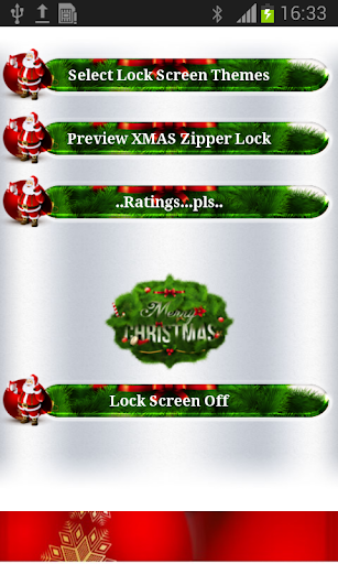 tree, snow, Santa Claus, balls, snow themes ) . Drag zip from top to bottom to unlock zip with zipper animation effect feeling like real zip. It's very innovative lock screen product for your mobile.