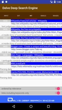 Simply choose the search engines to use and let Delve crawl them in parallel, extracting their top 10 results and searching them for your keywords of interest.
