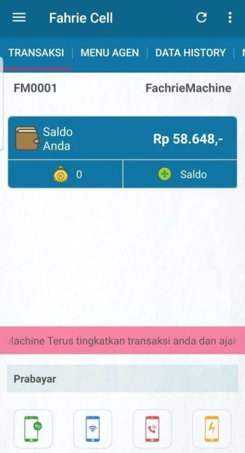 Fahrie Cell android application is a free mobile application for loyal members of Fahrie Cell wherever located. This application makes it easy for you to perform various transactions such as topping up pulses, purchasing electricity tokens, paying postpaid bills, purchasing game vouchers, etc.