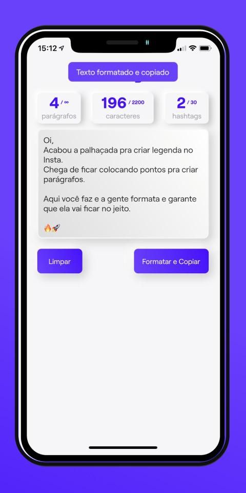Normalmente dar espaços no aplicativo do Instagram costuma ser uma tarefa chata e depois de postado nem sempre o texto fica da forma como queria, esse app resolve o problema.
