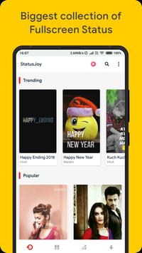 Gone the time when you used to keep different video status apps for different platforms. Now, you just need one app and it's enough! Instant status is your all-in-one solution for full screen HD video status for status sharing networks like WhatsApp, Facebook, and Instagram. Are you looking for the best collection of song lyrics video status to upload to your WhatsApp stories or on your FB or Insta story? Well, Status Joy app is perfect for you. By just installing one app, you will get access to hundreds of video status in mp4 HD format. Using Status Joy app is easy and it's small in size so there is no worry of removing your favorite apps to install this one.