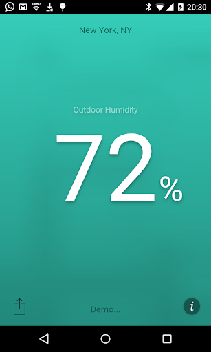 This application shows the current relative outdoor humidity, measured by a nearby weather station for which it uses your current location.