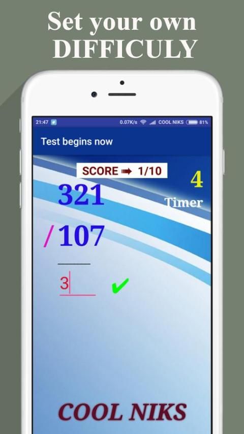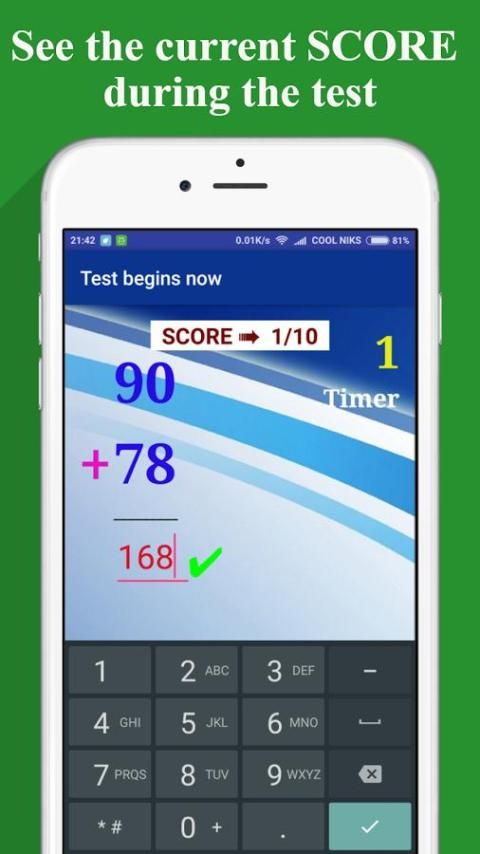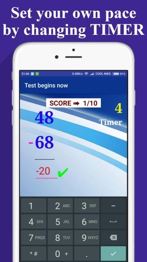 You can set your own timer, range of numbers (like 5-50) , and your own set of questions and at the end your report card will be displayed .