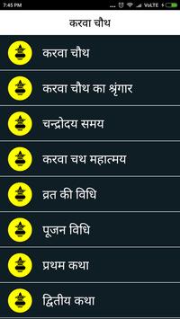 Karva Chauth (Hindi: करवा चौथ) is a one-day festival celebrated by Hindu women in many countries in which married women fast from sunrise to moonrise for the safety and longevity of their husbands. The fast is traditionally celebrated in the states of Madhya Pradesh, Rajasthan, parts of Uttar Pradesh, Himachal Pradesh, Haryana, and Punjab.[1][4] The festival falls on the fourth day after the full moon, in the Hindu lunisolar calendar month of Kartik. Sometimes, unmarried women join the fast for their fiancés or desired husbands.