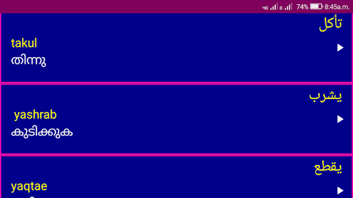 Learn Arabic from Malayalam easily. Achieve Your goal of Fluently Talking in Arabic. This app is made to teach you Arabic through Malayalam for free. 🆓