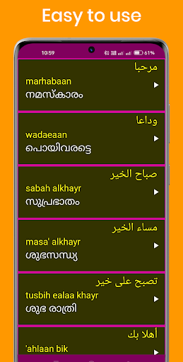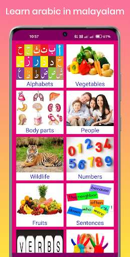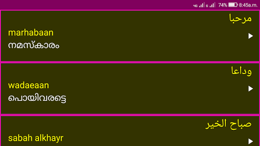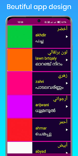 4. Learn Spoken Arabic from Malayalam app comes with a beautiful app design to make Learning Arabic through Malayalam a pleasant experience. 🌈