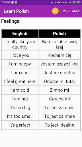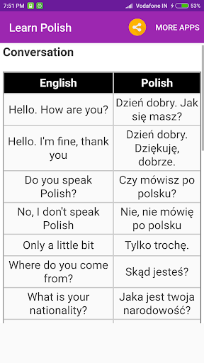 Learn Polish with 5 minutes of practice daily. Edu Technologies is the quick fix that will teach you core Polish words and Polish phrases for conversation, just like a phrasebook. If you want to learn beyond the basics, there are also Polish grammar lessons available. It’s even great for kids!