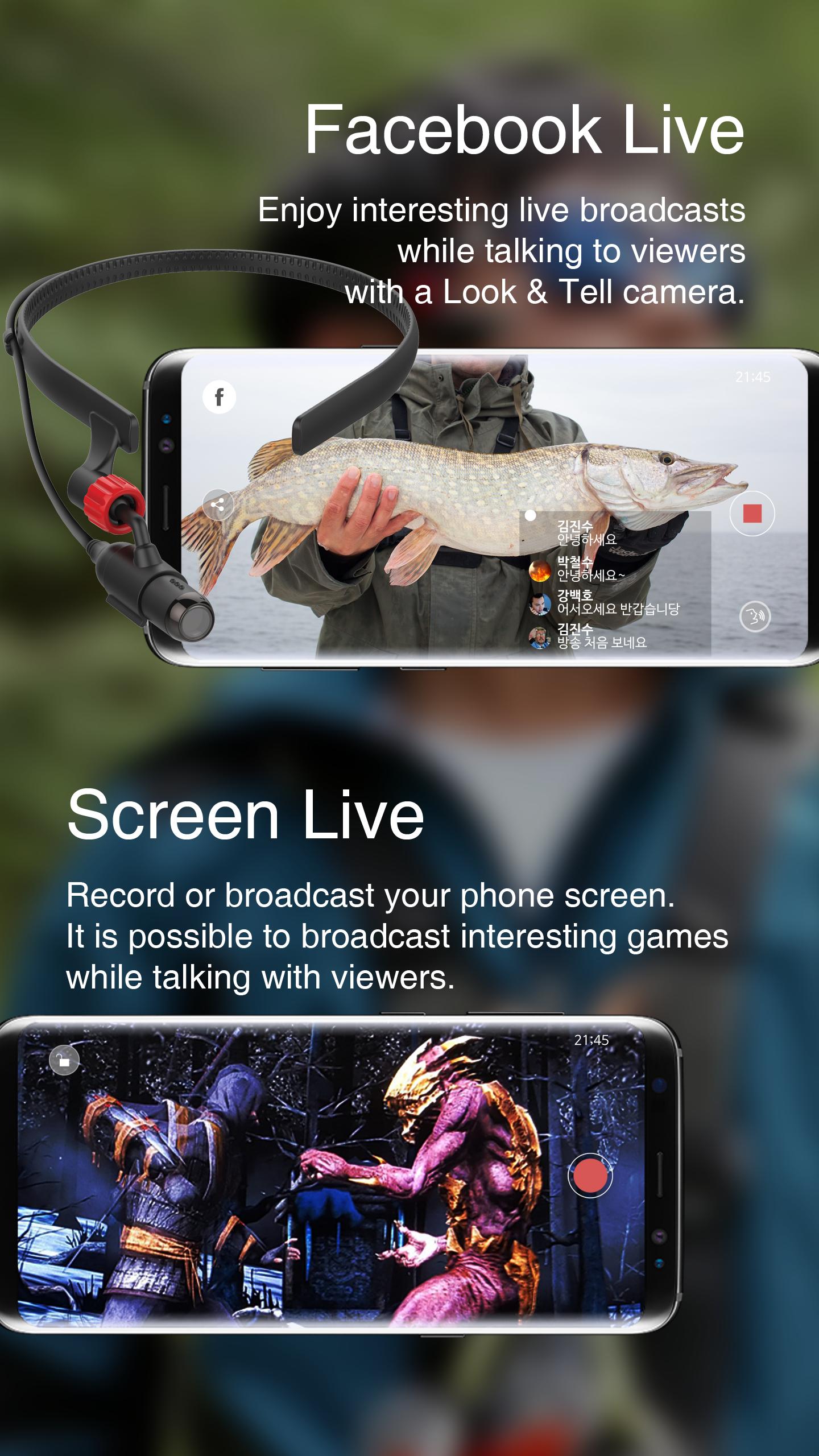 Look&Tell can record video and live broadcast through phone camera, screen image, USB camera, webcam.