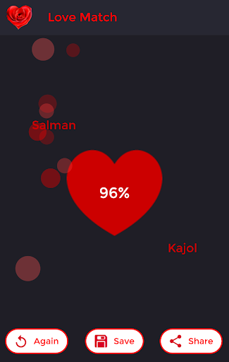 This Love Caculator: True will help you find out. This is a simple Love Calculator which displays love percentage based on names,dob,zodiac,photo and color. Enter your name and the name of your partner/lover/crush to find Love compatibility & chances of successful love relationship.