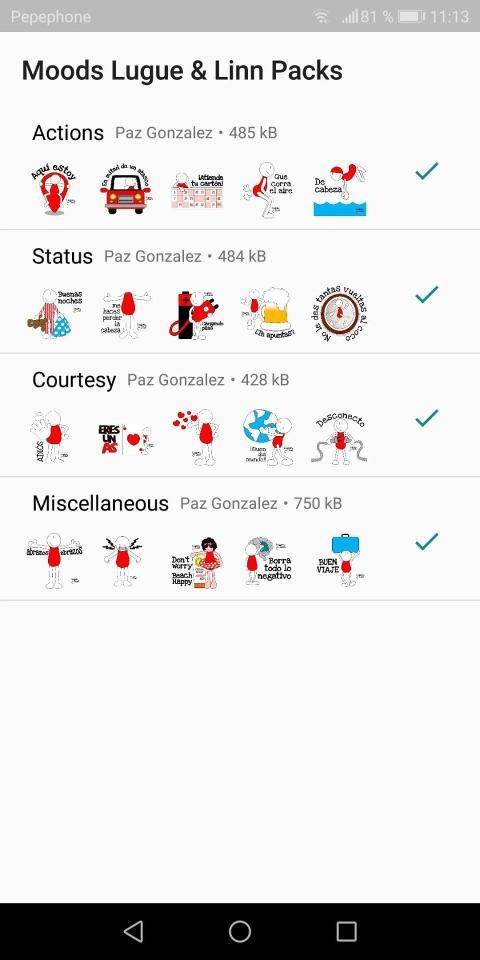 With this app you can download a lot of very useful stickers for countless occasions and situations: moods, good wishes, thanks, status and actions among others.