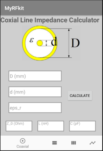 The calculators include a Coaxial Line Impedance Calculator, a Stripline Impedance Calculator, a Microtripline Calculator and a wavelength Calculator.
