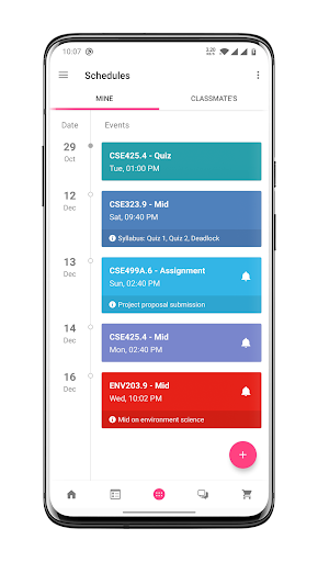 Set schedules for exams, quizzes, projects or anything. It also allows you to set reminders. Besides, you can see all the schedules your classmates have added, so you won't miss a exam.