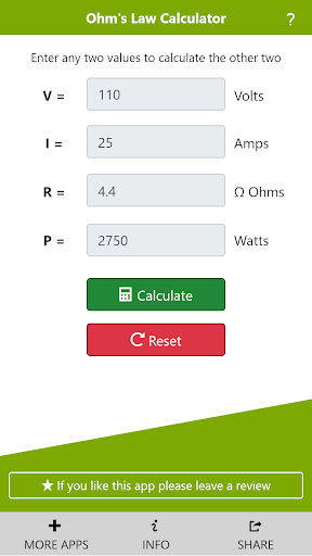Ohms Law Calculator app for Android.