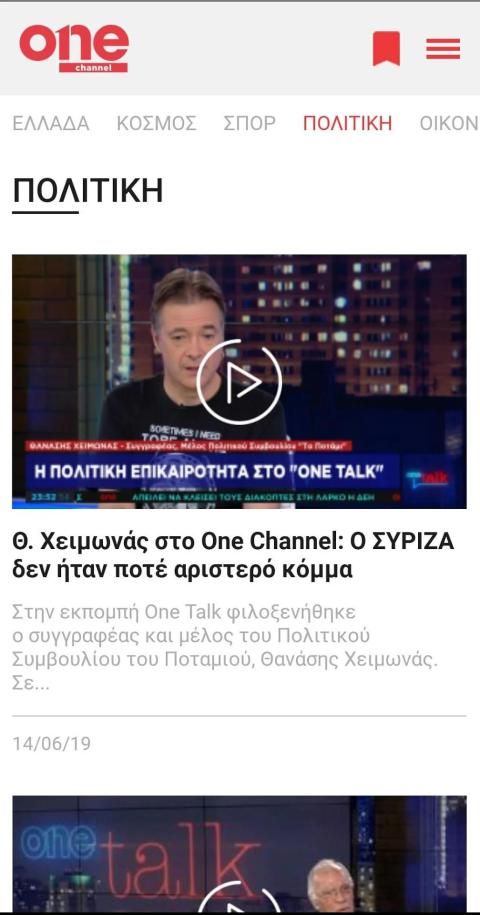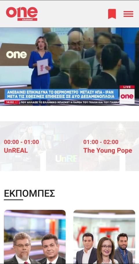 One Channel, the new big channel, is here. The new modern world of information and entertainment through the innovative One Channel application. Watch live and ondemand valid and timely information on developments in Greece, the Economy, the World.