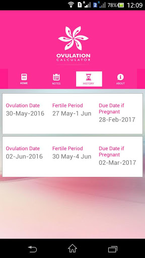 the average number of days in your menstrual cycle and first date of your last menstrual period, your ovulation date and your fertile period will be shown and you can record the result ans check the same in History. Being intimate during the fertile period greatly improves the chances for you to conceive. The app also displays the expected date of delivery if you happen to conceive at that time.