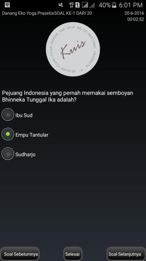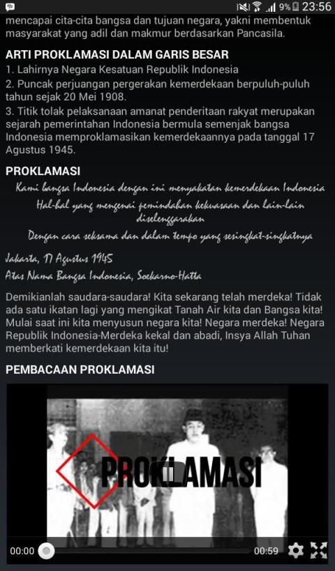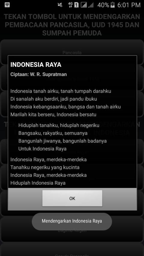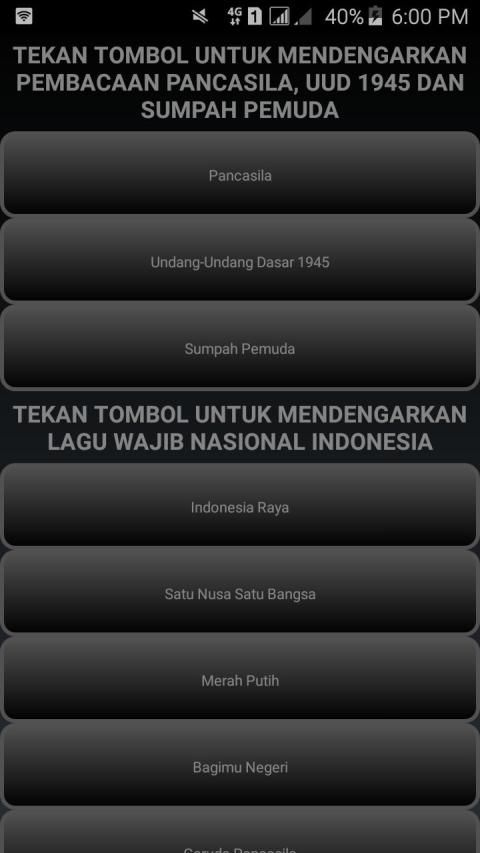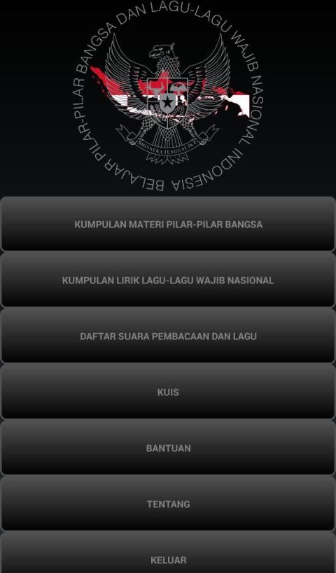 This application contains material content pillars of the nation and national compulsory songs Indonesia as follows: