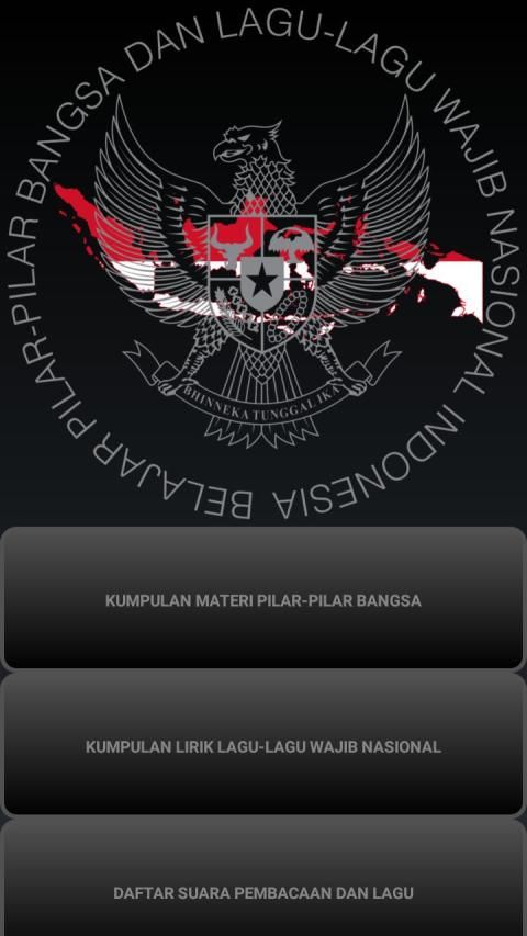 Aplikasi ini berisi konten materi pilar-pilar bangsa dan lagu-lagu wajib nasional Indonesia sebagai berikut: