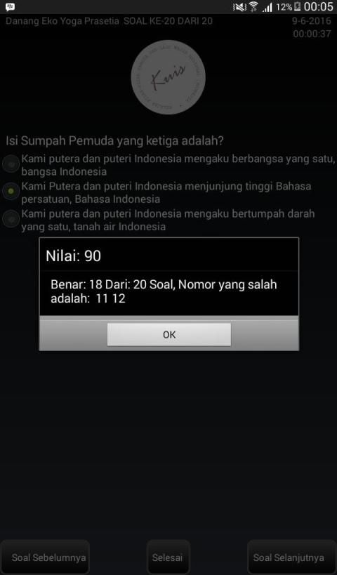 8. Kuis/Pertanyaan dengan 20 soal yang ditampilkan secara acak.