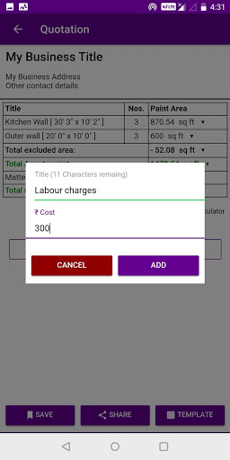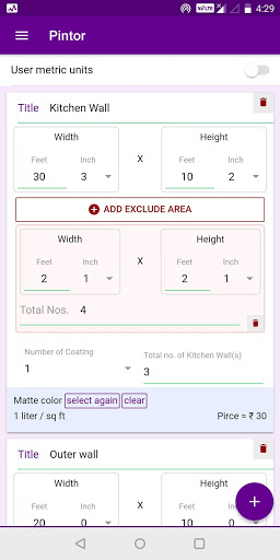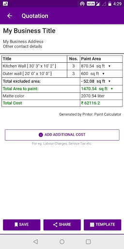 This app can help the painters to calculate the paint requirement for the interior or exterior of any house depending upon their rates which they can feed in the app.