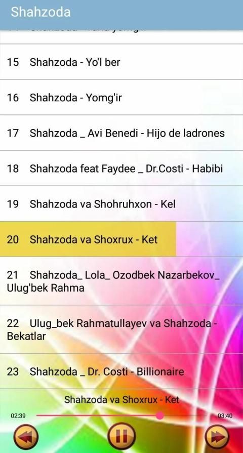 O'zbekistonda eng katta muvaffaqiyat sifatida tanilgan eng zamonaviy zamonaviy qo'shiqlar mavjud. Ariza Internetdan ishlaydi.