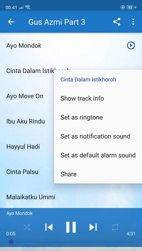 There are various features in this application, such as the application share feature and song sharing, can be played in the background (background), and each sound can be set to your smartphone ringtones.