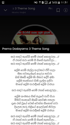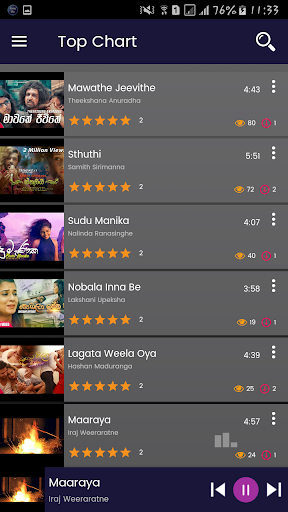 We Daily Update New Sinhala Songs Of Sinhala Artists. Now you can play and listen on your mobile. It has best collection of Songs with attractive design. You can find all Sinhala Songs easily. This app includes top categories New Release, Popular Songs, Rap / Hipop, Today Released, Top Charts, Week Top and including Playlist. Also you can create your own playlist and you can choose your favorite songs.