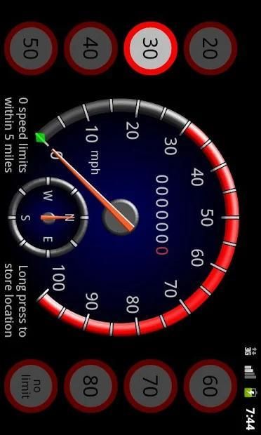 This application provides an analog speedometer and odometer that gives audible and visible warning / alert when a set speed limit is exceeded. This pay version allows you to save the location of any speed limit changes, and automatically triggering a speed limit change when passing them again.