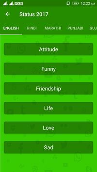 This application contains the status message in different language like Hindi, Gujarati, English, Marathi, Punjabi, Tamil, Telugu, Kannad, Bangali.