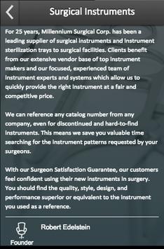 This app enables surgical instrument buyers to request a quote or seek help finding surgical instruments from Millennium Surgical Corp / surgicalinstruments.com. We can reference any catalog number from any company and you can even upload a reference photo.
