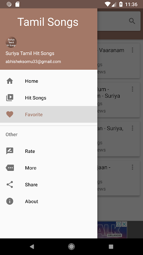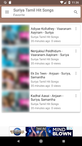 In Suriya Tamil Hit songs app one can easily bookmark their favorite Suriya Tamil video song and then watch them later by going to favorites section from the navigation bar.