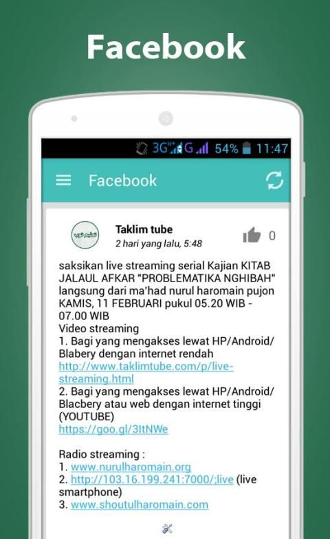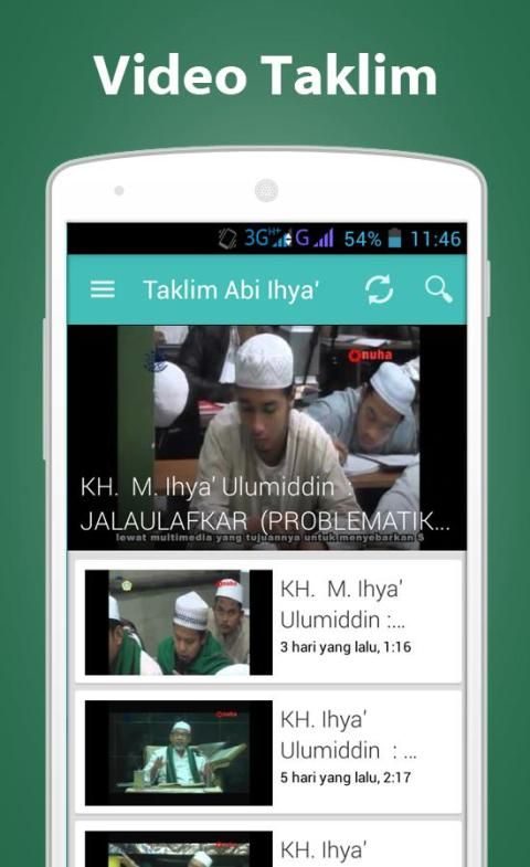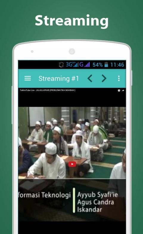 Listen live event video streaming and video diverse scientific study presented by Abina KH. M. Ihya 'Ulumiddin via Android Application Taklim Tube (free) now.
