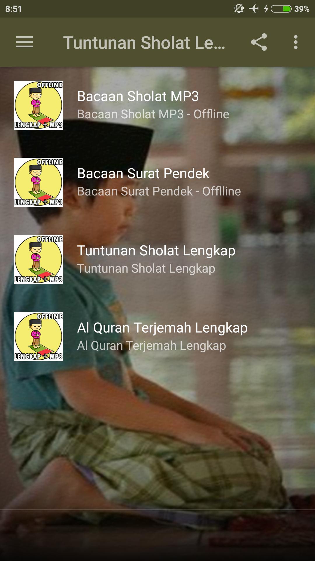 Tuntunan Sholat Lengkap + Mp3 : kumpulan tuntunan dan panduan sholat lengkap. Ayo yang sedang mencari aplikasi tuntunan sholat lengkap maka anda bisa menginstal aplikasi yang satu ini. App Tuntunan Sholat Lengkap sudah dilengkapi dengan mp3 / audio sehingga akan memudahkan anda, app ini juga bisa dijalankan secara offline, sehingga tidak perlu terhubung ke internet.