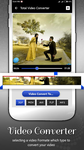 -Total Video Converter allows you to select convert format such as 3gp, mpeg, mp4, flv, avi, mov,