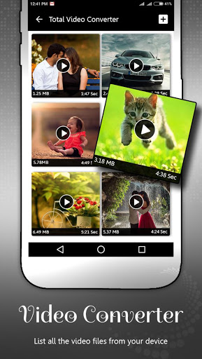 Total Video Converter or Video Converter or Video Cutter is a simple and easy to used to just select video and you just press on video formats that you like to convert file from that and you get easily converted on that format with simple click on convert.