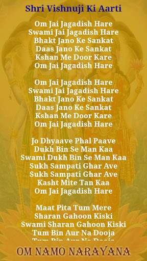 So download it and listen Vishnu Aarti : Om Jai Jagadish Hare to invoke divine blessings of Lord Vishnu.