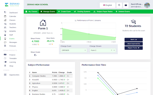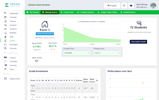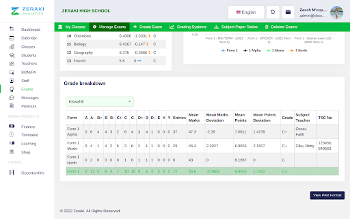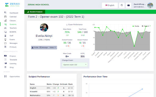Zeraki Analytics helps schools analyze academic performance, generate informative report forms and share analyses of academic performance with students and parents. Zeraki Analytics helps schools make sense of academic data faster and observe interesting patterns that wouldn’t be apparent from looking at tabular data. Because you spend a lot of time preparing students for exams, administering and grading exams, Zeraki Analytics gives you a new and easy way to analyze and visualize exam results. From a mark sheet to a variety of graphs and pre-formatted tables, Zeraki Analytics makes it easy for teachers to focus on their work.