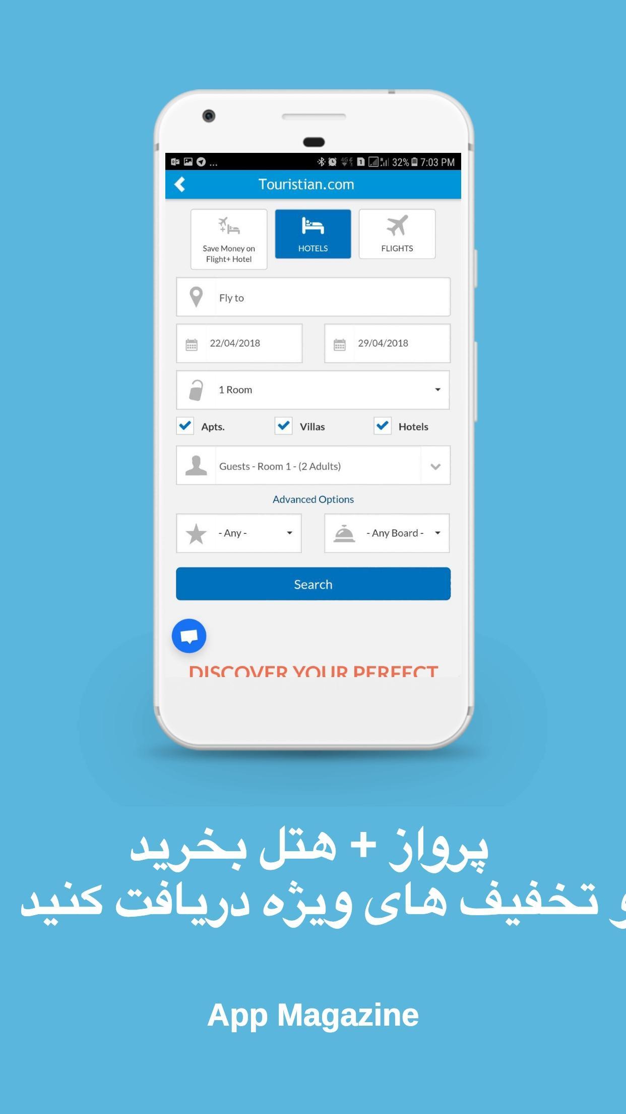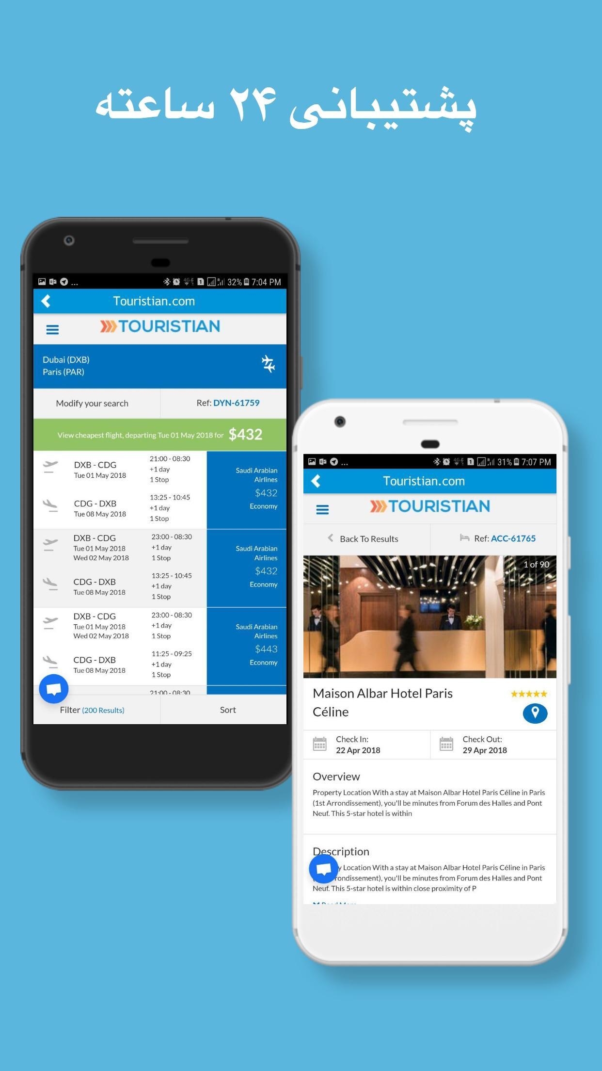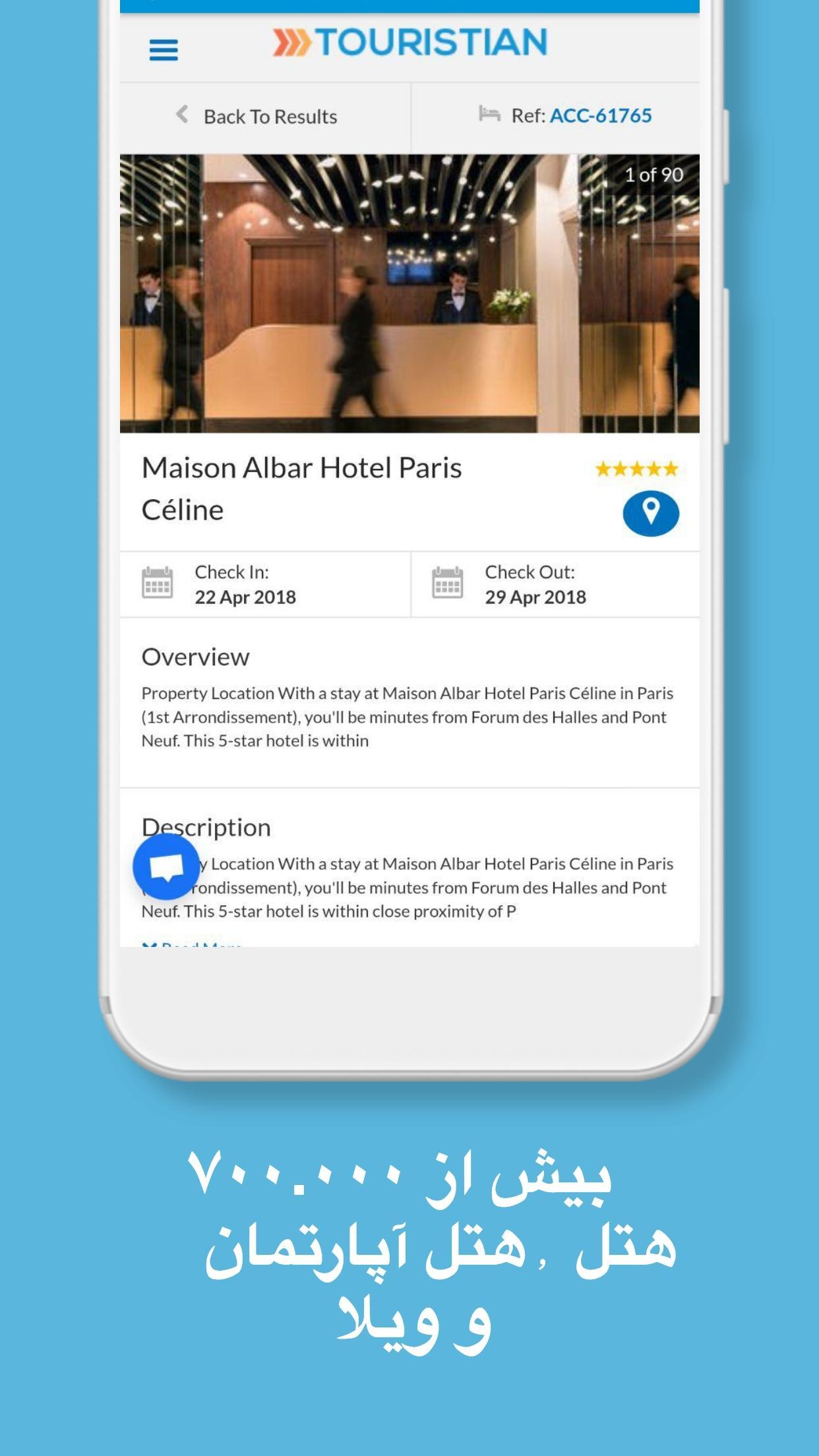 برخی از امکانات اپلیکیشن موبایل توریستین :